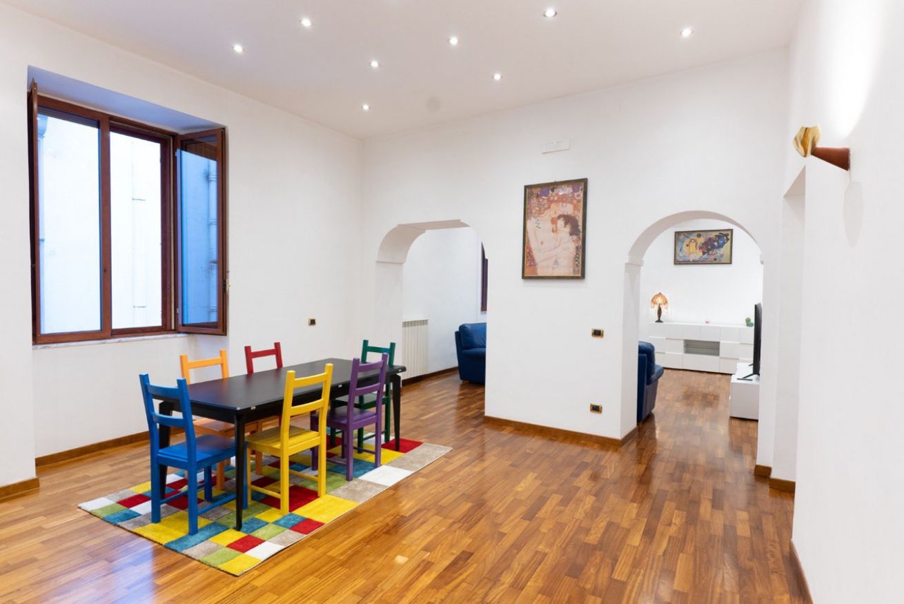 L’appartamento è provvisto di wifi libero super veloce a 200 mb/s ed è composto da ingresso, cucina, sala da pranzo, ampio soggiorno, due bagni, tre camere da letto con balconcini annessi e finestre. Il tutto con una suggestiva e tipica vista sul quartiere centrale della città.